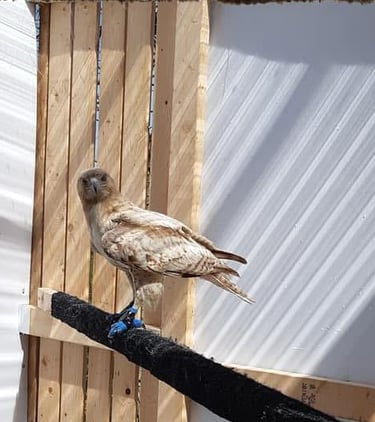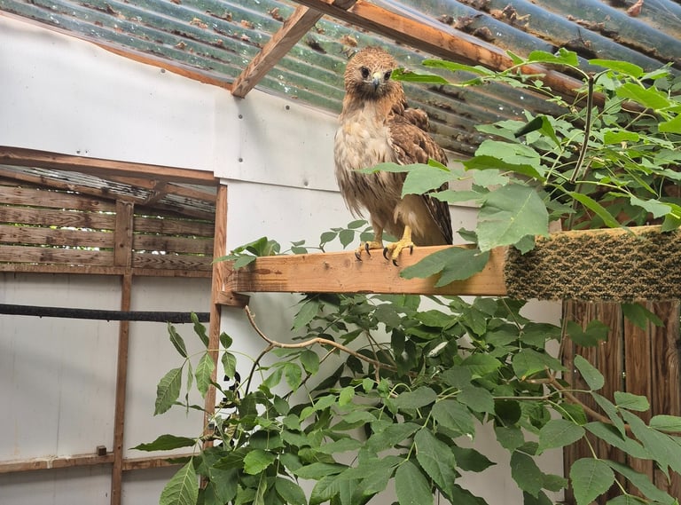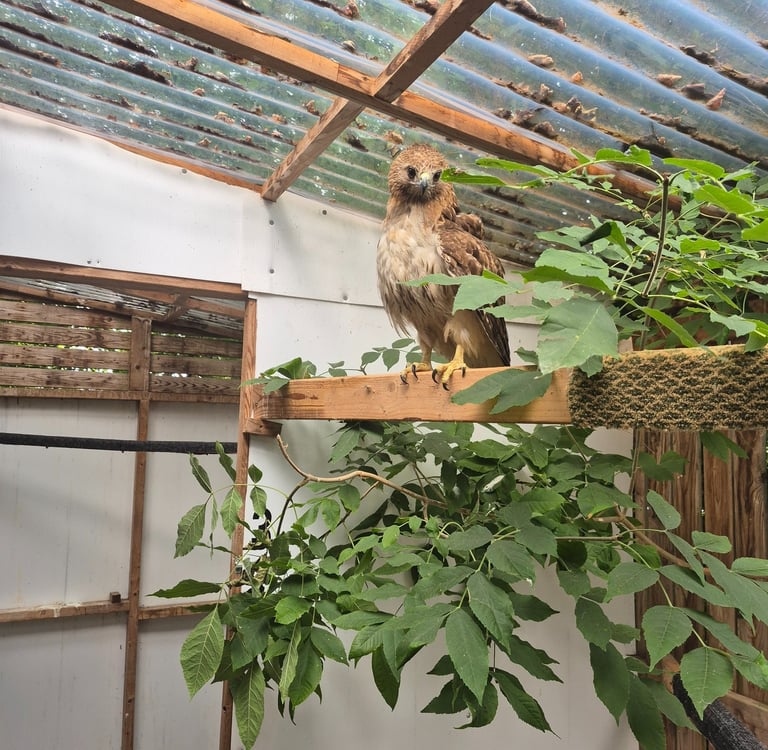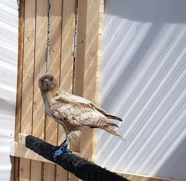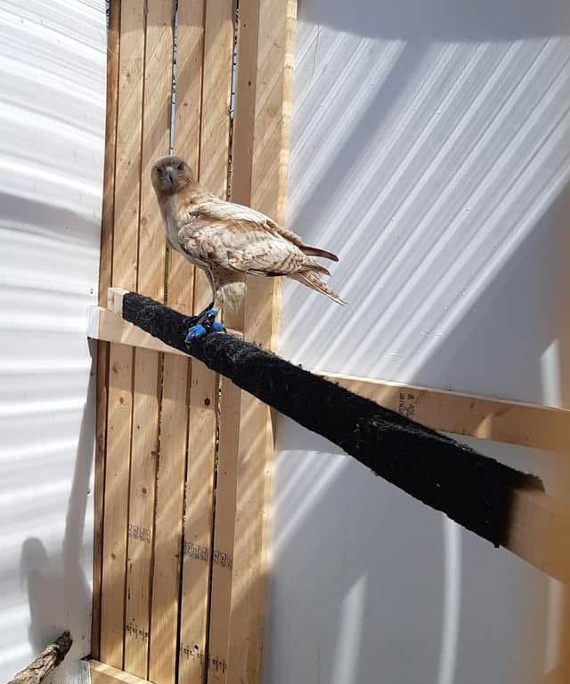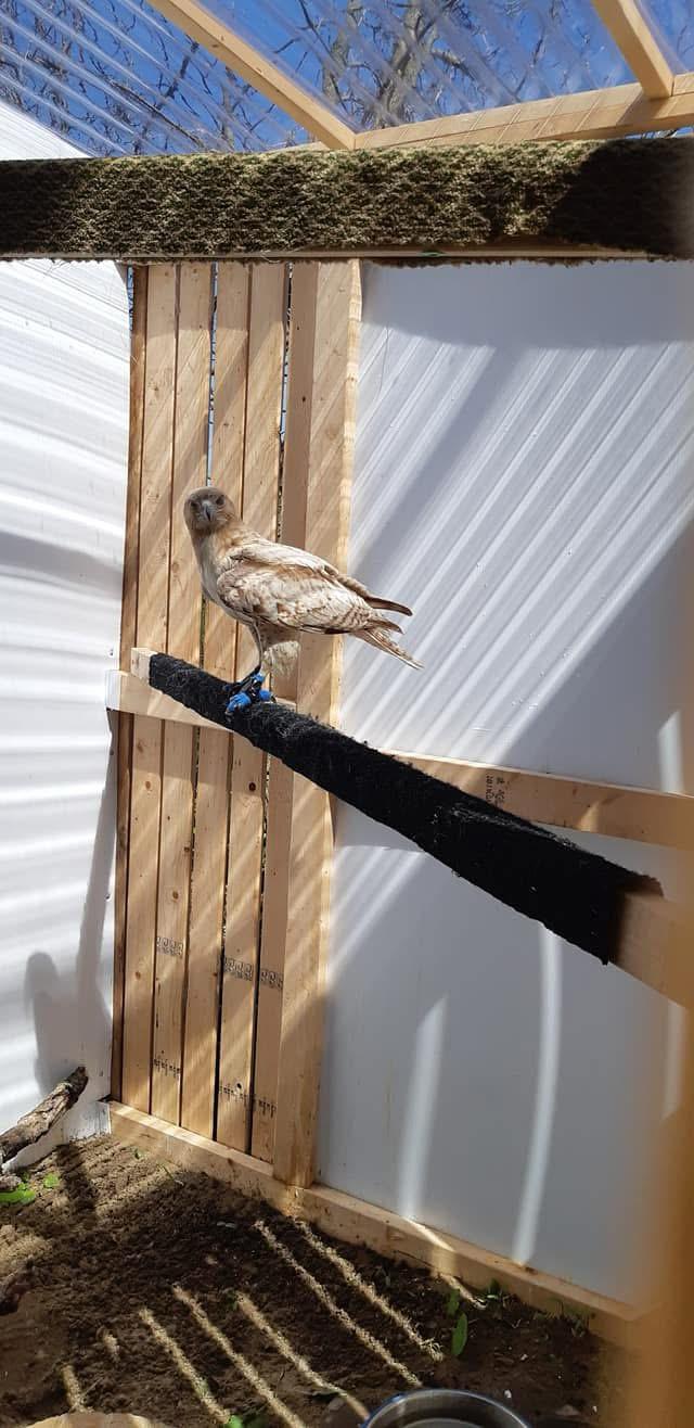 Red-tailed Hawk in care after having surgery to repair wing