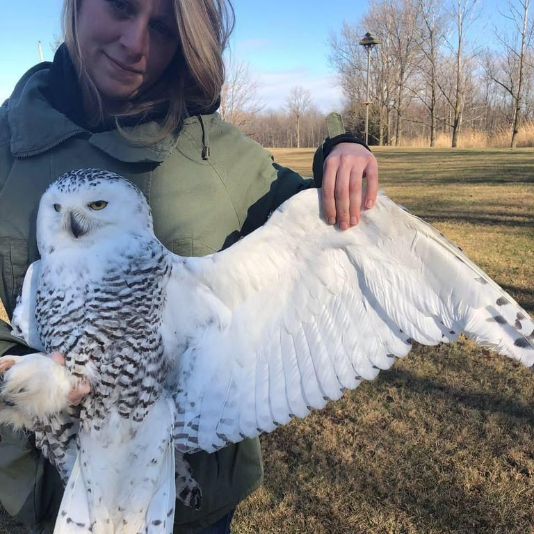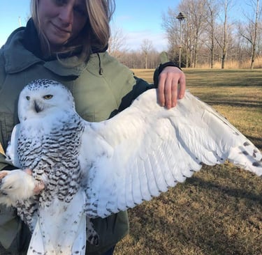 Banding Snowy Owl before release