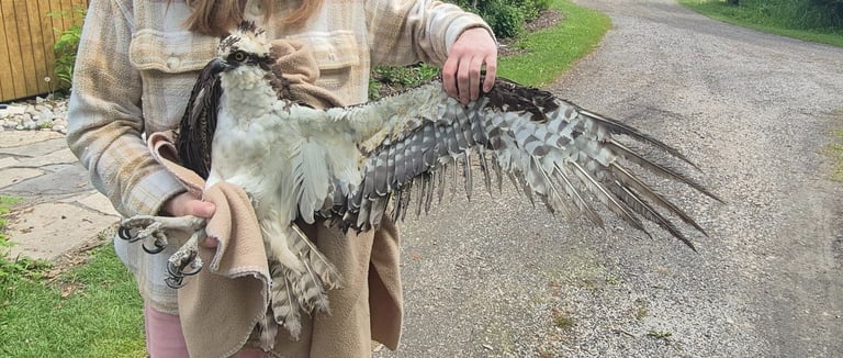 An Osprey was admitted after flying over a flarestack. His feathers were singed by the flare, leaving him unable to fly as a result of the damage.