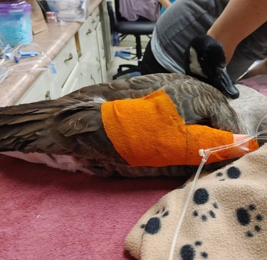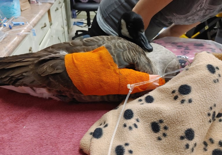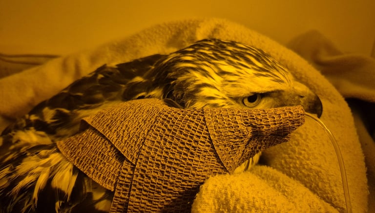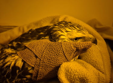 We provide medical treatment for various bird species. Some treatment options we offer includes fluid therapy, medication administration, wound management, fracture stabilization, fecal analysis, and bloodwork. We work with our local veterinary clinic where we bring patients for radiographs and minor procedures. For patients requiring orthopedic surgery or advanced procedures we consult with, and transfer our patients to other veterinary professionals specializing in wildlife rehabilitation to ensure we provide the most appropriate care to our patients. We also network regularly with larger rehabilitation centres and transfer patients for further conditioning when appropriate.