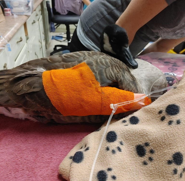 We provide medical treatment for various bird species. Some treatment options we offer includes fluid therapy, medication administration, wound management, fracture stabilization, fecal analysis, and bloodwork. We work with our local veterinary clinic where we bring patients for radiographs and minor procedures. For patients requiring orthopedic surgery or advanced procedures we consult with veterinarians specializing in wildlife rehabilitation to ensure we provide the most appropriate care to our patients. We also network regularly with larger rehabilitation centres and transfer patients for further conditioning when appropriate.